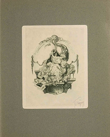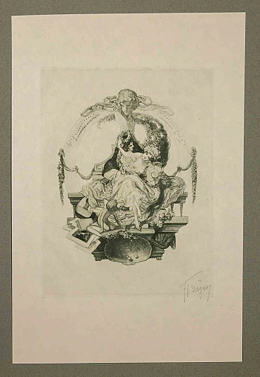 Héliogravure on japanese paper realized by Fraz von Bayros in 1913 for Ex Libris Verlag K. Th. Senger, Munich.Mounted on passepartout. Edition of 260, hand signed in pencil by the Artist.Ref. Brettschneider 175.Very good condition.