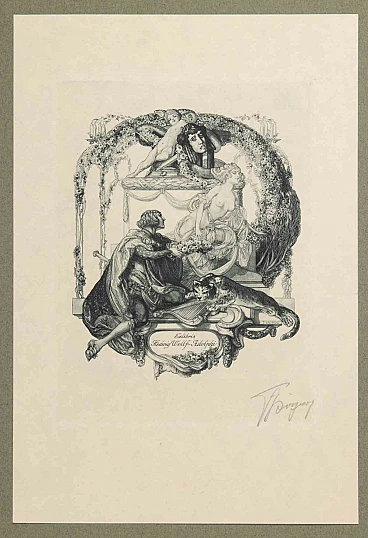 Héliogravure on japanese paper realized by Fraz von Bayros in 1913 for Ex Libris Verlag K. Th. Senger, Munich.Mounted on passepartout. Edition of 260, hand signed in pencil by the Artist.Ref. Brettschneider 104.Very good condition.