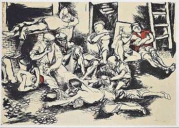 Renato Guttuso, Bricklayers at Rest, Photolithograph 1940s-1950s