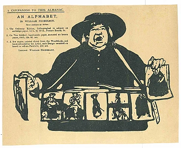 An Alphabet is a Wood engraving, realized by the Artist William Nicholson in the 1890s.Titled, the artwork belongs to the series "Almanach' Guidance of Editions is written on the left.Good condition on creamy paper.William Nicholson (5 February 1872 – 16 May 1949) was a British painter of still-life, landscape and portraits. He also worked as a printmaker in techniques including woodcut, wood-engraving and lithography, as an illustrator, as an author of children's books and as a designer for the theatre.