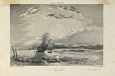 France Maritime is an original print on paper realized by Camille Roqueplan in the mid-19th Century.Signed on the plate and titled.Lithograph engraving.Good conditions, with foxing.