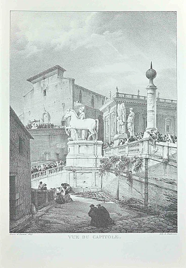 Vue du Capitole is a print realized after Godefroy Engelmann in the 1970s.Signed on the plateOffset on paperGood condition with slight foxing.
