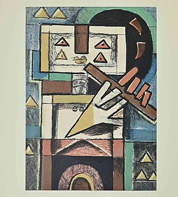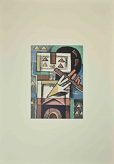 Lovers is a lithograph realized by Ibrahim Kodra in 1973.Hand-signed on the lower right, Numbered, edition of 100 prints.Good conditions.Ibrahim Likmetaj Kodra (22 April 1918 – 7 February 2006) was an Albanian painter. In 1944 he opened his first workshop in Milan; in 1948 he opened a personal and group exposition in the "Art Club" in Rome, where he met and become friend of Pablo Picasso, which often will be contested on artistic reflections. In 1950 he painted frescos in the most important museums and buildings of Milan. Kodra then opened an exposition with Picasso, Henri Matisse, Amedeo Modigliani, Georges Rouault, Dufy and others in the Mostra del Disegno in Chiavari (Italy).