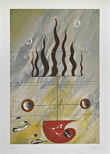 Composition Homage to Miró is a Digital Print and hand-retouched realized by Martine Goyens in 2023.Hand-signed on the lower right.With the certification on the rear.Good conditions.