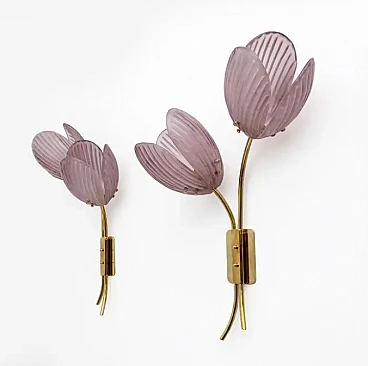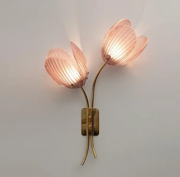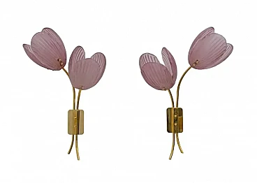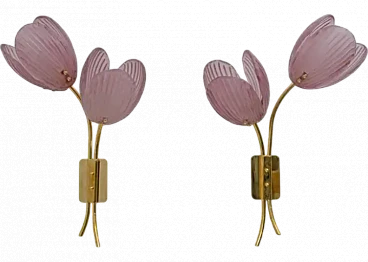 Pair of Tulips Murano glass and brass sconces, 2000s