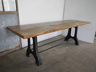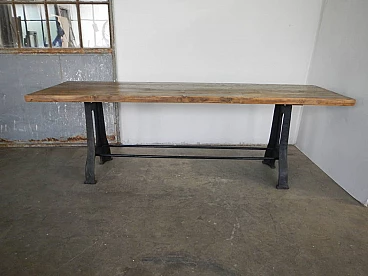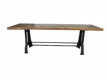 Industrial work dining table in iron and wood, 70s