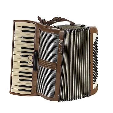 Bakelite accordion 34 keys and 75 bass with leather strap. Metal manufacturer\'s mark on the front.