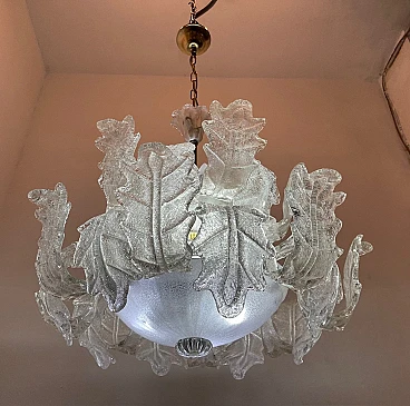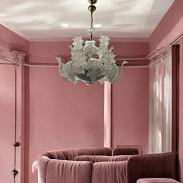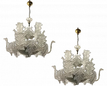 Pair of Murano frosted glass chandeliers by Sylcom Murano, 1970's