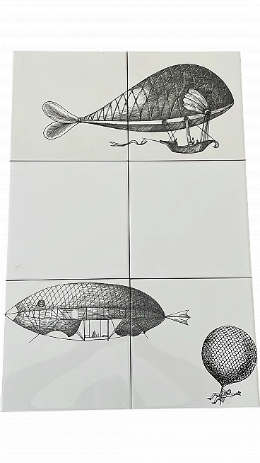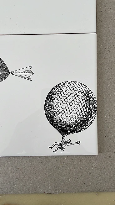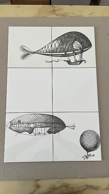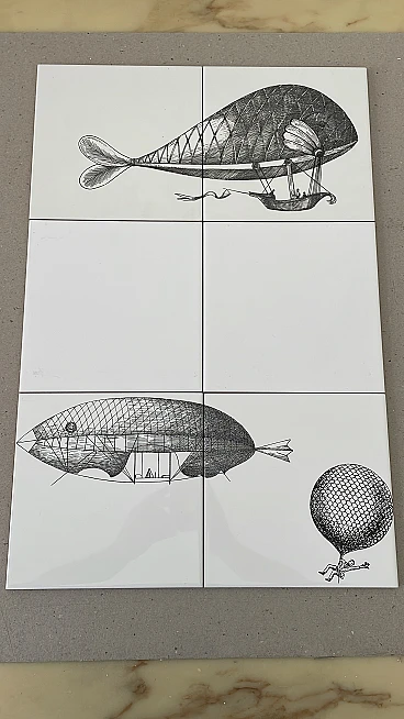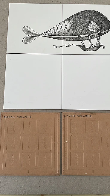 6 tiles 20 x 20 Bardelli Milano extra glossy white ceramic tiles 4 Flying Machines 2 decoration tiles Design Piero Fornasetti brand new Out of production