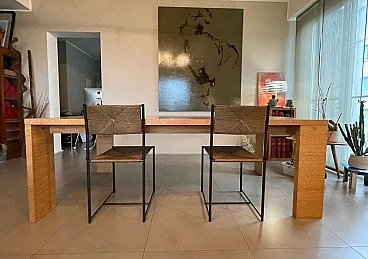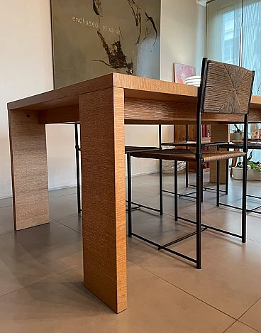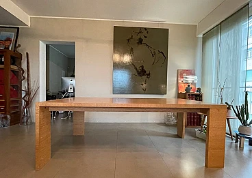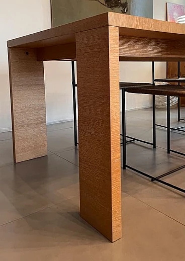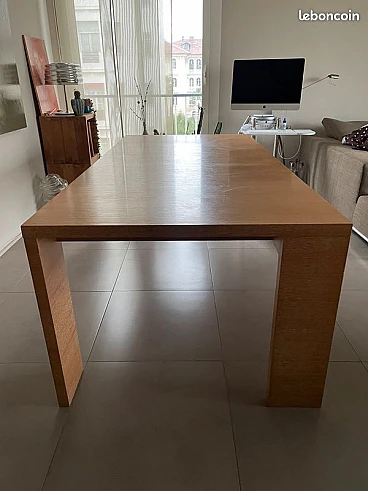 MAXALTO Refined table ALCEO 210 Honey Oak MAXALTO Beautiful and elegant table model ALCEO 210 in light honey brushed oak. ALCEO table by the great master of design Antonio Citterio, project first presented in 1999. EXCELLENT STATE OF MAINTENANCE. Minimal signs of use. Structure formed by an upper top and 4 vertical legs, with Mdf composite paneling, with external surface coating in light brushed Oak. MEASUREMENTS Width 100cm Depth 210cm Height 73cm Thickness of horizontal and vertical panel structures : 2cm Price of the table new 6200 euros NB: the table will be sold disassembled to limit the volume of space and shipping costs.