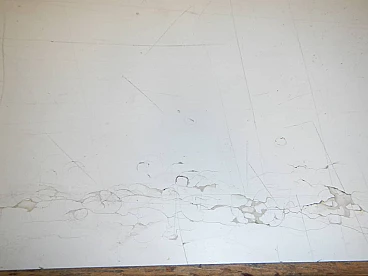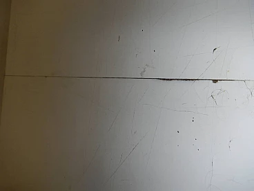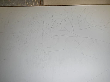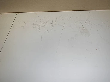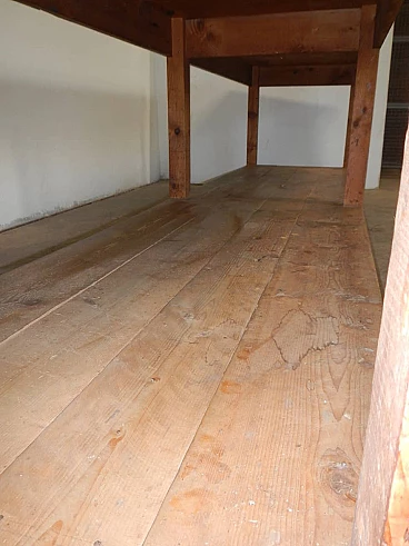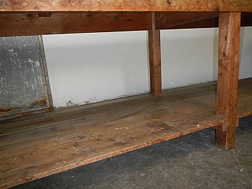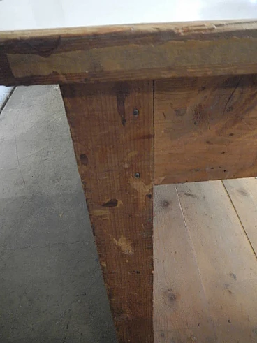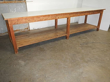 Large work table from the 1970s, with fir frame with double top. The upper top is covered with white formica with signs of wear. Waxed and in good condition.