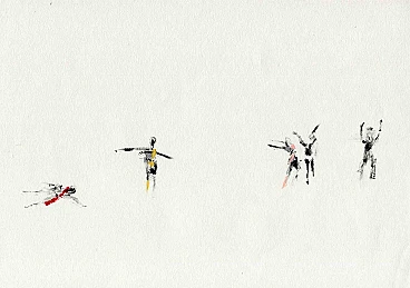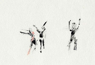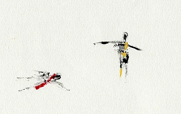 Red, Yellow, Pink Roses of Revolution is an original painting realized by Iranian Painter and Poet Parimah Avani in 2022. China ink and acrylic on ivory-colored paper. Hand-signed and dated. Excellent conditions. Presented in a Personal exhibition of "le Poesie Di Lutto e Di Lotta " (The Poems of Struggle and Mourning) curated by Leda Bartolucci in Turin, Italy, Bagni Pubblici, 2022. The artwork is poetically created through expressionistic brush strokes, the well-applied dry and watery strokes from the series “The Poems of Struggle and Mourning " in poetic style representing revolutionary figures in a minimalistic manner. The various layer is made perfectly by the expression of brushes, which makes this series unique: is deeply behind the dynamic emotion of each figure and abstract form, four colors here have metaphorical features; pink as woman, yellow as hope, silvery as resistance, and red as blood. The panoramic lines inspired by Persian calligraphy created motifs and repetition harmoniously in a neat composition, each reminding mysterious words. The style of Persian calligraphy and her knowledge of poetry let her create a visual poem in an expressionistic style, which is congruent with the title and her experience, the use of space and maintaining an empty background and foreground intentionally have been made to emphasize the solitude and loneliness of figures and at the same time connect to oriental calligraphy in which empty space has the same value as the filled one, succeed to create pure incarnation. Her artworks artwork has evident characteristics, firstly strongly inspired by Tachisme's “Abstraction lyrique" and artworks of Henri Michaux, and Hans Hurting secondly oriental Persian calligraphy of poems style is evident in her artworks, finally dynamic sensation of revolutionary art, the slogan of street wall transformed into contemporary language and its features intuitively are subtly inserted. Parimah Avani (Born1988) is an Iranian Poet and visual artist, since 2009 has lived and studied in Italy, after graduating from the Fine Art Academy of Rome in painting continued her research on “Aesthetic of Talisman and Magics Text and Craft” and took her Ph.D. title in the Sapienza University of Rome in 2020. From her have been published books and illustrations of books. The Last book of her “ The Magic Scroll of Antalus” published in 2020 in Iran has been among the finalists for the “Shamlu” literature and Poetry award in 2021. Her main camp study has been mythology, ritual, and magic, and her art is strongly connected to the transfer of local and traditional folk art and its symbols into the contemporary language in a poetic style. In these series evidently, Avani has chosen Persian calligraphy for this transformation.