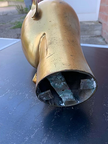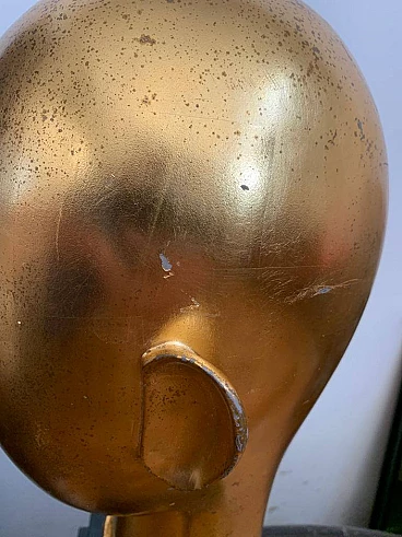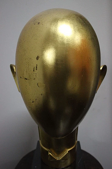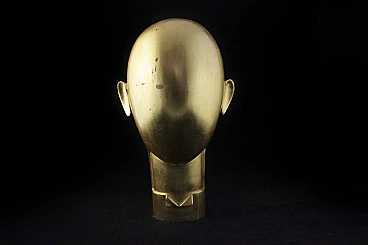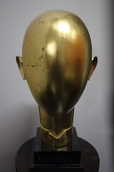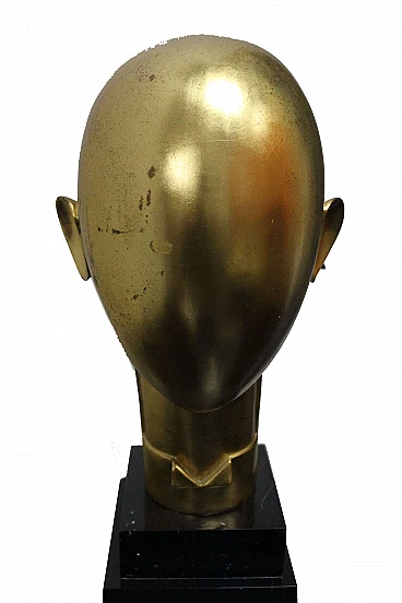 The sculpture is made of gilded brass from around the 1930s/'40s and is unsigned. The Castolin soldering and the derivative patina especially in the soldering and internally confirm the period. The workmanship is certainly of high quality and the style is uniquely unmistakable as being by Franz Hagenauer. Piece attributed to the designer shown above. Has no attribution mark or proof of authenticity, but is documented in design history. It has surface scratches on the gold and wear during storage more substantial on the ear and back see photo, base replaced.
