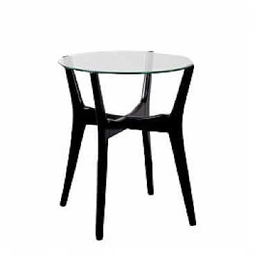 Coffee table 50's coffee table in black lacquered beech wood with glass top. The object has been totally restored