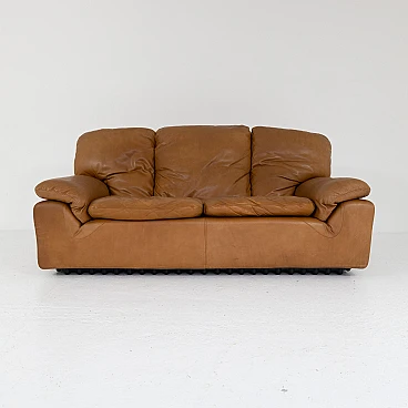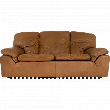 3-seater sofa from the "Bonheur" series, Brunati production designed by Titina Ammannati and Giampiero Vitelli. Brown leather upholstery, patina due to age and use. Manufacturer's mark present.