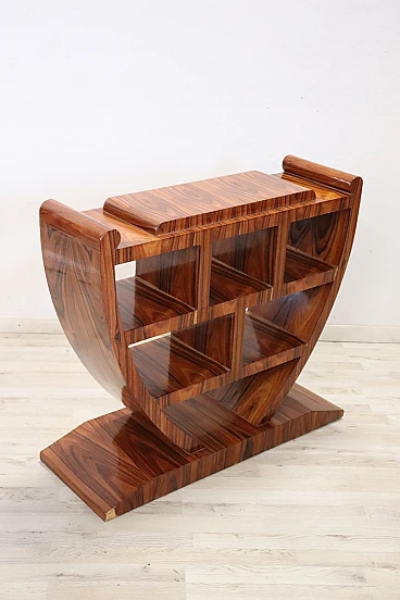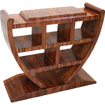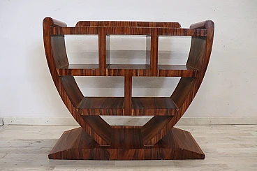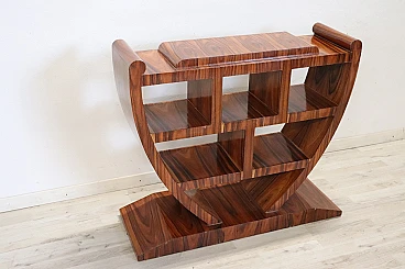 We are thrilled to present this extraordinary console, the perfect combination of sophisticated design and expert craftsmanship. With its wavy profile inspired by the Art Deco style, this console exudes a sense of dynamism and refinement. Crafted from rosewood veneer, its smooth, glossy surface captures light in ways that enhance the wood's natural grain, creating an incredible visual effect.