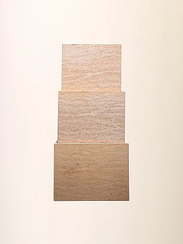 Each coffee table in the set features a rectangular shape with clean corners and a minimalist design that expresses simplicity and sophistication. The light wood finish gives the tables a bright and fresh look, perfect for contemporary environments. The elegance of the coffee tables, combined with their functionality, makes them ideal as furnishing elements for modern lounges or living areas, where they can serve both as support surfaces and as stylish decorative details. Good condition. A conservative restoration was carried out using natural materials. It may show some signs of aging. Please pay attention to the photographs.