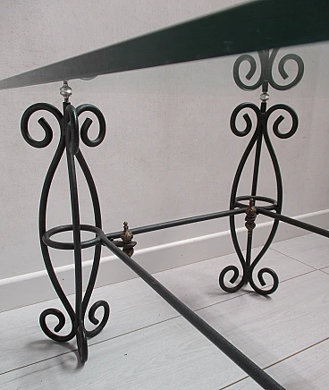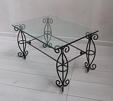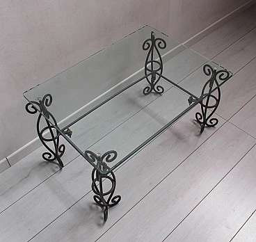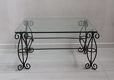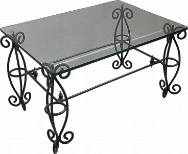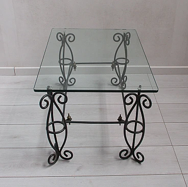 Wonderful and elegant antique coffee table from the second half of the 20th century, made of metal embellished with rich details and having a beautiful and sturdy cm-thick crystal top. 1.5, very beautiful and of notable scenographic impact thanks also to the details created with accuracy and refinement by the master craftsmen of the time, Italian handmade manufacturing, ideal as a furnishing object to embellish any environment by adding a tone of elegance and beauty Any lighter areas are due to the reflection of artificial light, excellent condition and as shown in the photo. Dimensions: height cm. 43 - width cm. 74 - depth cm. 54