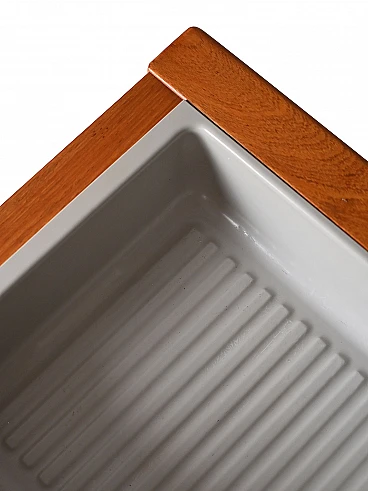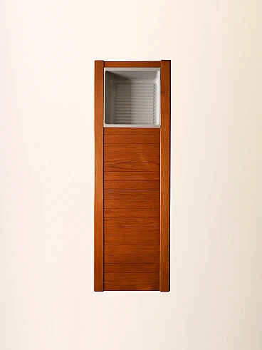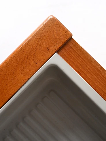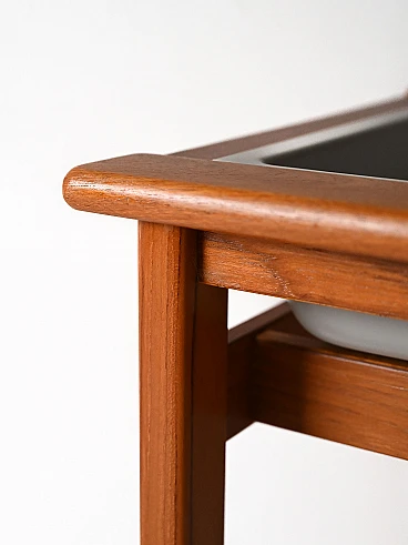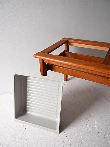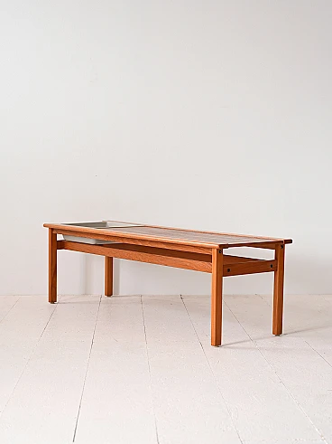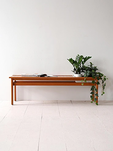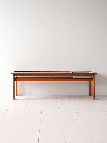 Scandinavian bench from the 1960s with a functional and versatile design. The wooden structure gives a touch of warmth and naturalness, while the particular feature of the top which includes a space for a metal planter adds a decorative and practical element at the same time.