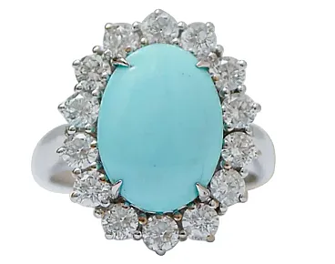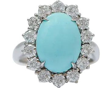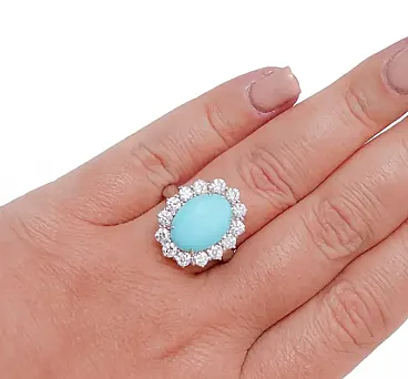 Modern white gold ring with turquoise and diamond, 2000s