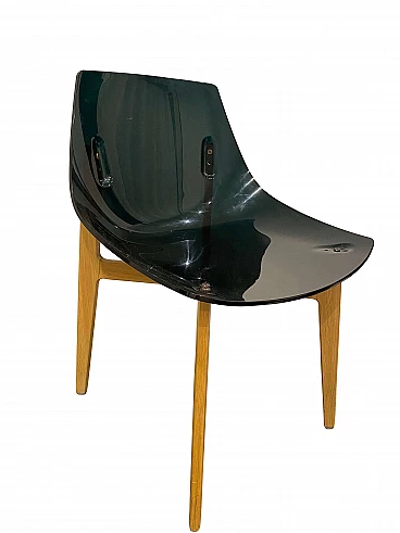 Aka is not the classic chair proposed in methacrylate, but is a family of three seats, stool, chair with armrests and chair with double peculiarities. Jean Marie Massaud has thought of an object that harmoniously combines a comfortable polycarbonate seat with a solid oak frame and iron screws. The ergonomic coloured, light and floating seat and the solid supports in natural color make Aka a splendid design object able to blend elegantly with any furnishing.