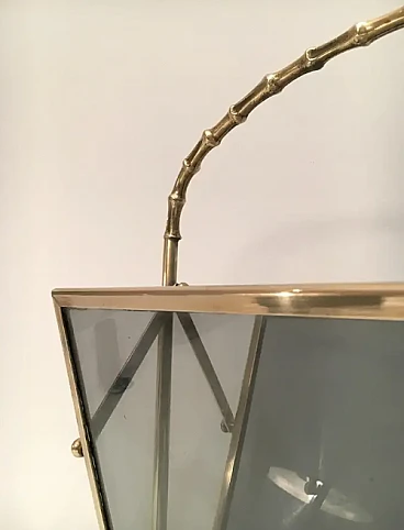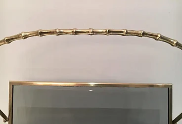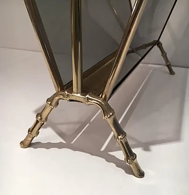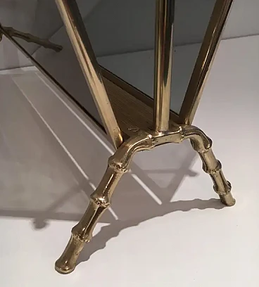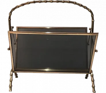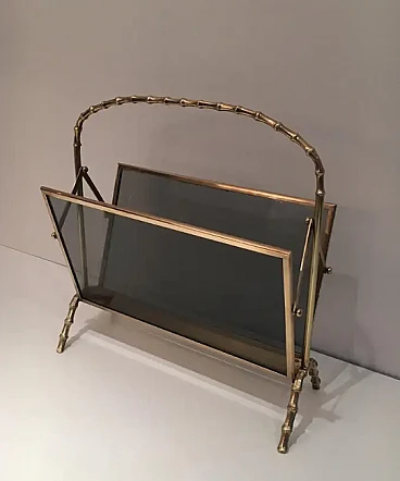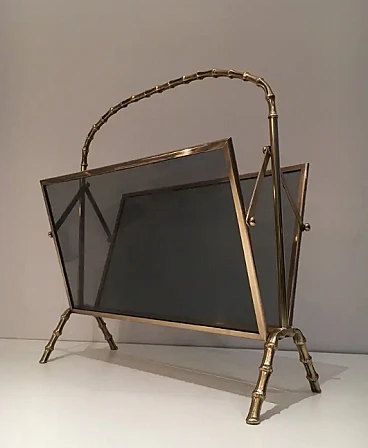 Magazine rack in imitation bamboo, brass and glass panels, 1940s