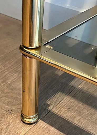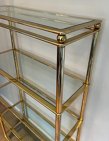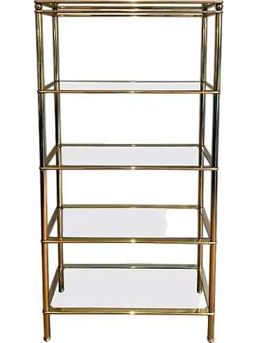 This very nice and decorative 5 tiers shelves unit is made of brass with clear glass trays. This is a French work. Circa 1970