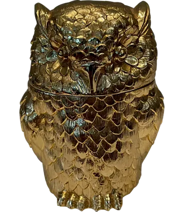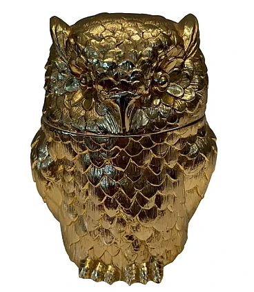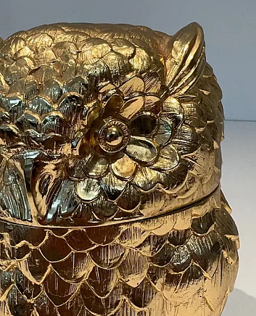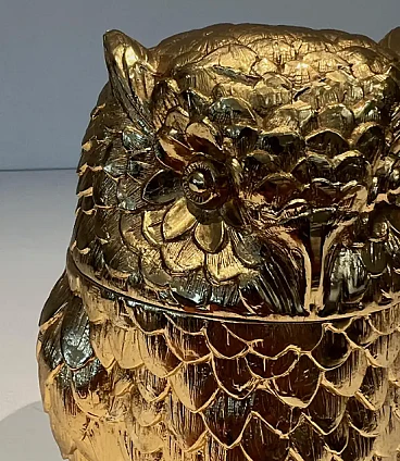 This very nice owl ice bucket is made of gilt metal . Very nice gilt. This is an Italian work by Mauro Mainetti. Circa 1970