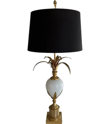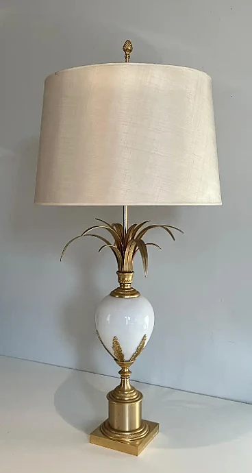 Ostrich egg lamp in gilded nickel and white opaline, 1970s