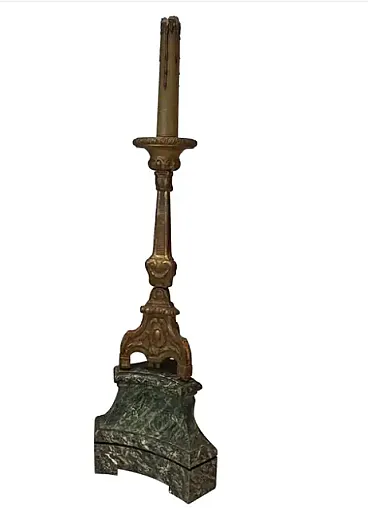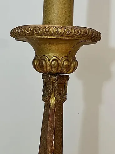 Carved and gilded wooden candelabrum on patinated base, 20th century