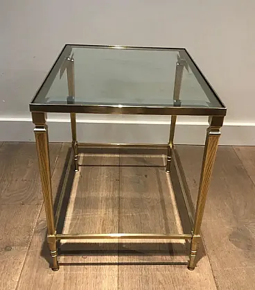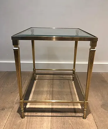 This neoclassical style side table is made of brass with fluted legs. This is a French work by Maison Jansen. Circa 1940