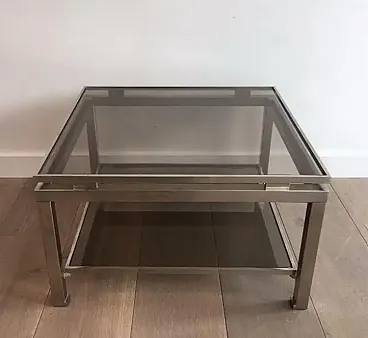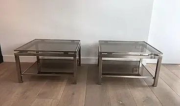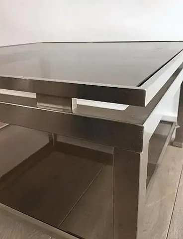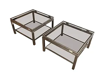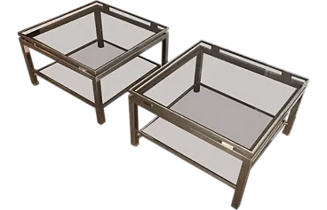 Pair of steel and smoked glass coffee tables by Guy Lefèvre, 1970s