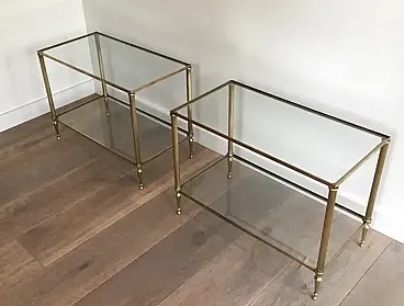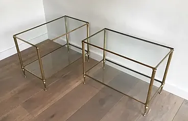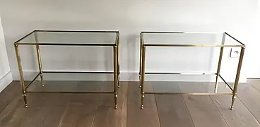 Pair of neoclassical style brass side tables, 1940s