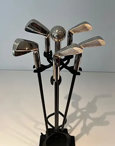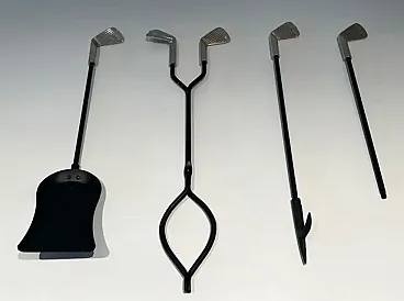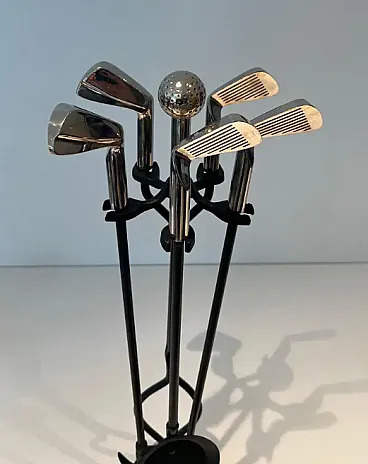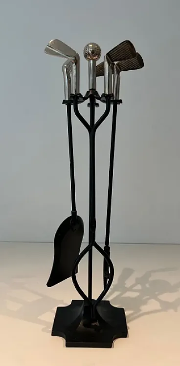 Lacquered metal and chrome fireplace tools, 1970s