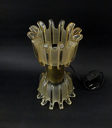 Splendid antique Murano lamp Seguso from the 1960s with two lights, made of Murano glass with a brass element, fitted with two E27 lamp holders, there is a switch to turn the light on and off, very beautiful and of notable scenographic impact, thanks also the details created with accuracy and refinement, ideal as a furnishing object, any lighter areas are due to the reflection of artificial light, used condition, in perfect working order and as shown in the photo. Dimensions: height cm. 28 - width cm. 16