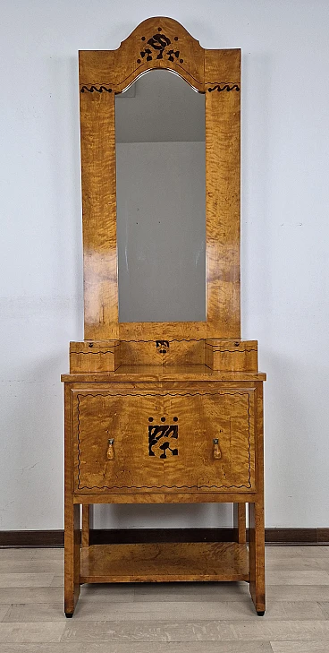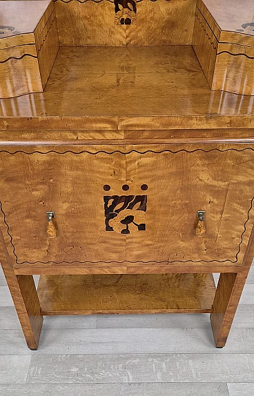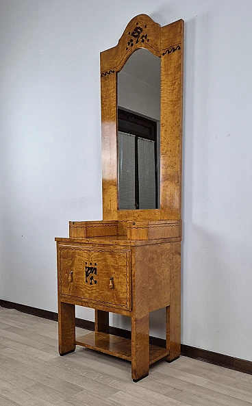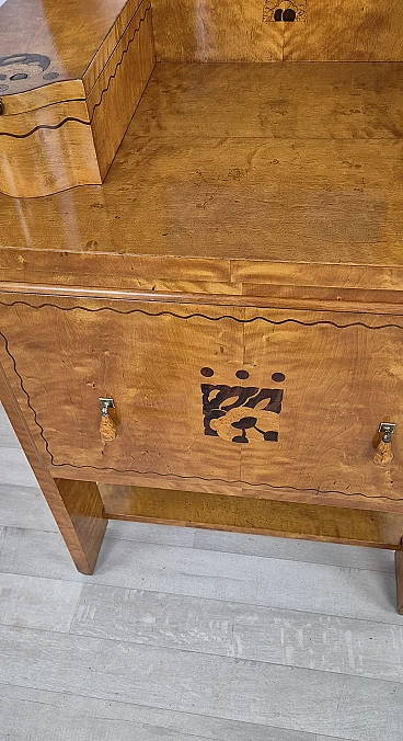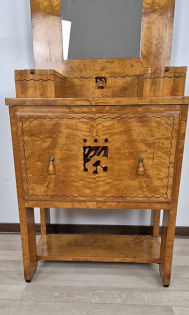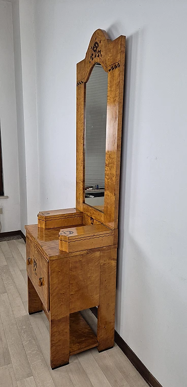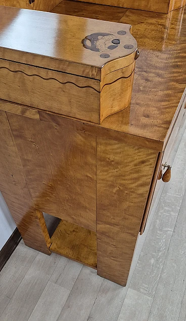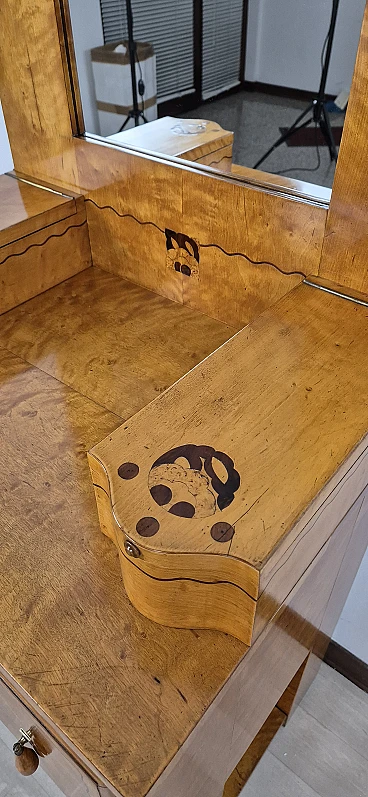 Refined Milanese Art Deco Vanity entirely in Birch Root with Rosewood inlays.