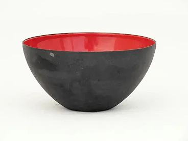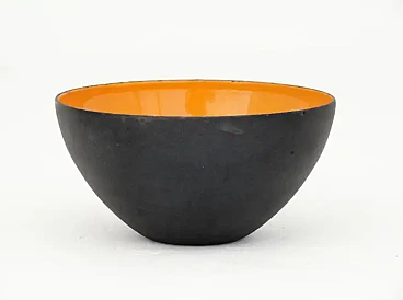 Herbert Krenchel Krenit 4 bowl set first edition by Torben Orskov Denmark. first edit in metal enameled inside , gold medal triennale Milano '54 , measure; diameter bowl diameter 5 x height 3.4". Herbert Krenchel Herbert Krenchel (1922- ) is a Danish civil engineer born in Copenhagen. He designed the Krenit bowl in 1953. The name is a combination of the designer's name and eternit, a fiber cement he used in his work as an engineer. The bowl had a matte black exterior, a thin edge and an enameled interior, and it won a gold medal at the Milan Triennale in 1954. Two years later, Krenchel created a melamine salad set for the line, taking his inspiration from chopsticks and Asian minimalist design. Before this time, salads were not common on Danish dinner tables, but Danes were just starting to include them in their meals. The Krenit salad set appeared on the cover of the first issue of the Danish interior design magazine Bo Bedre. The line has been out of production since 1966. The Krenit bowls have been reissued by Normann Copenhagen. These are made of steel and melamine, rather than the enamel of the originals