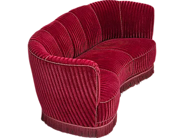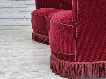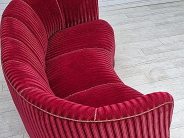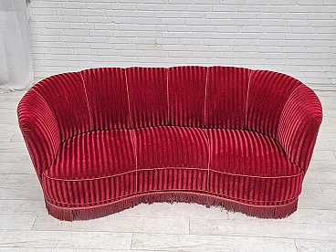 Danish 3-seater "Banan" sofa cherry-red velour, 1960s