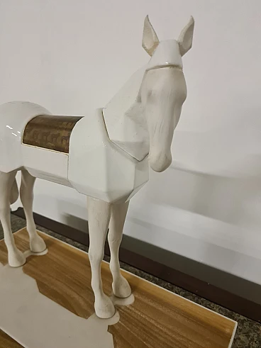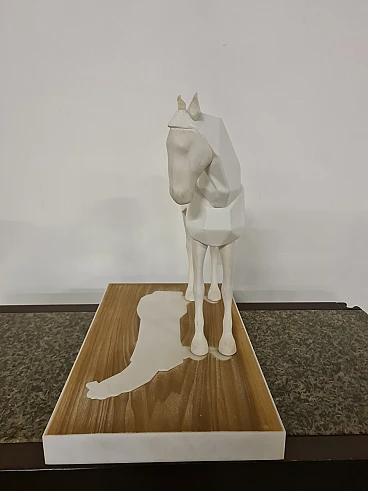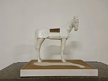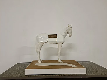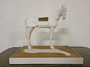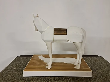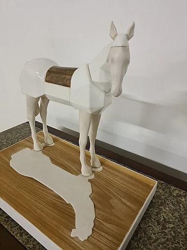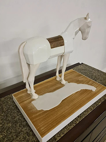 Sculpture depicting a minimal and modern interpretation of an elegant white horse.