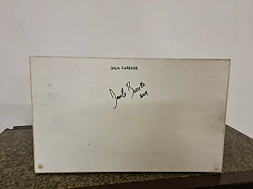Base made of wood and Perspex, paws and muzzle of the animal in painted wood, body in glazed ceramic and details in engraved bronze.