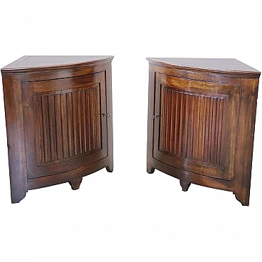Beautiful rare pair of ancient corners dating back to the last decades of the eighteenth century or so from Piedmont. The corners are made of fine solid walnut wood of great patina. Particular the rounded shape and grissinato panel on the front. Inside comfortable shelves. Present 18th century nailing. Restored according to conservative criteria, ready to be placed in the house. We ship with couriers who deliver only street level no porterage in the house. Proposal to an optimal price still negotiable send also your proposal of purchase.