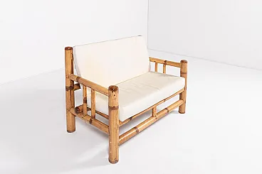Italian design wicker/bamboo frame sofa-bench produced in 1970’s. The removable cushions are included.