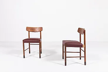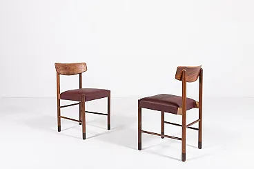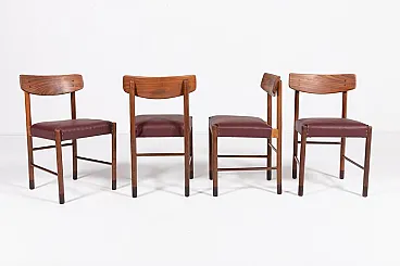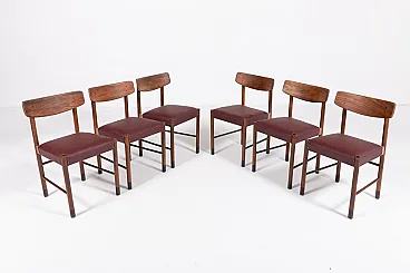 6 Wood and faux leather chairs, 1960s