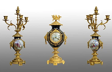 Napoleon III French clock triptych in bronze and porcelaine, '800