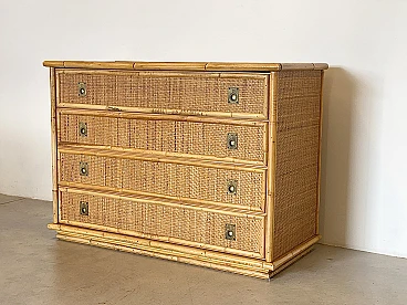 Dal Vera chest of drawers from the 70s, bamboo and brass handles