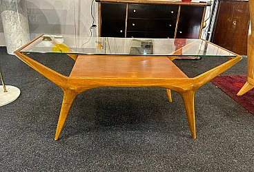 Rectangular coffee table in wood and glass by Carlo de Carli, 1950s