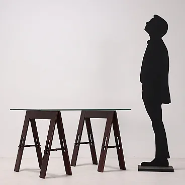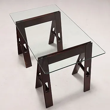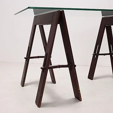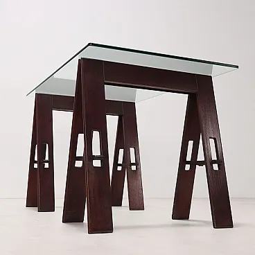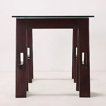 Table wood trestle base crystal, 1980s
