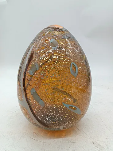 Large egg in Murano glass, with gold inclusions and various colours, 1960s.
