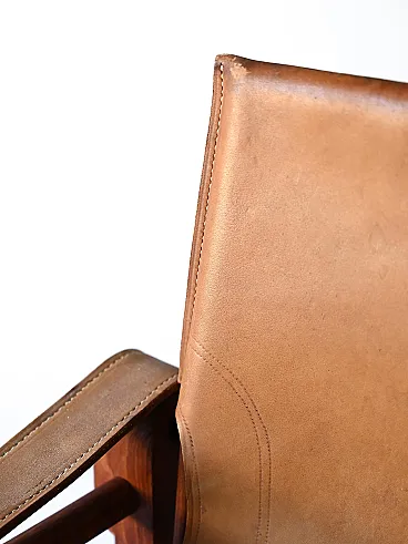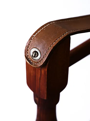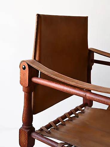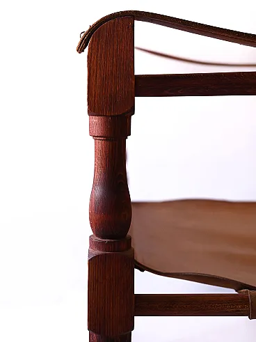 Iconic chairs designed with a solid wood supporting structure and a seat with leather armrests. The Safari armchairs represent not only a functional element, but also a work of art that reflects the attention to design and quality typical of the Scandinavian tradition. Good condition. It may show some signs of aging. Please pay attention to the photographs.