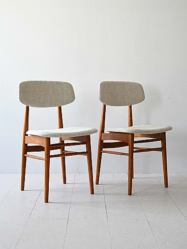 Pair of Scandinavian chairs in wood and fabric